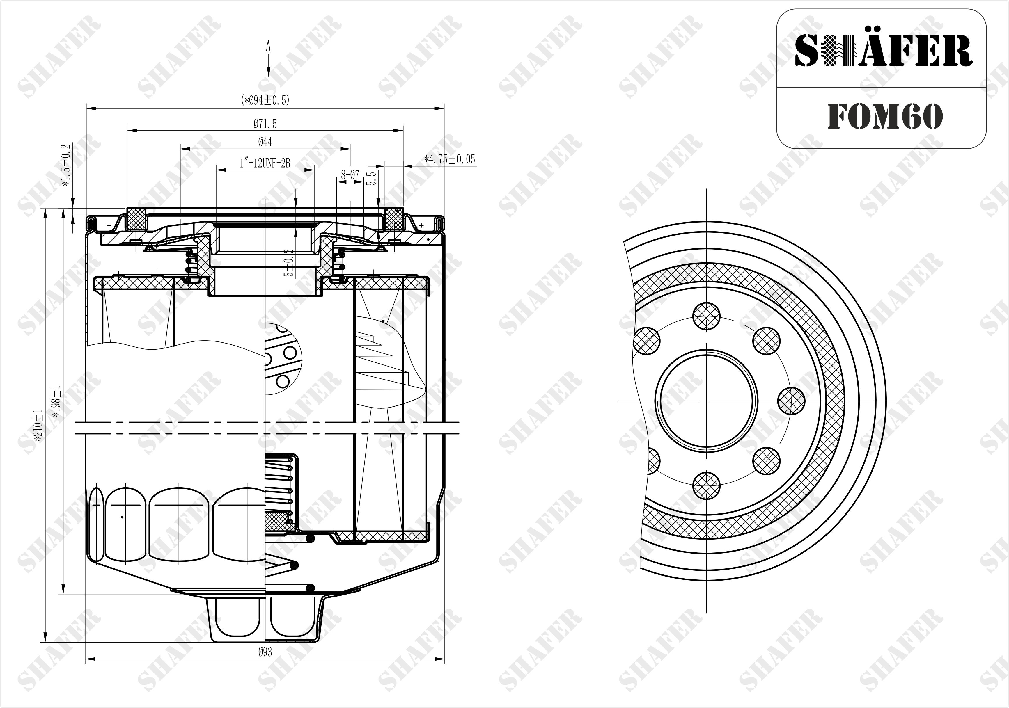 Oil filter DAF 65, F 11/13/17/19/23/27/28/33, D=93mm, H=210mm, M1-12 UNF