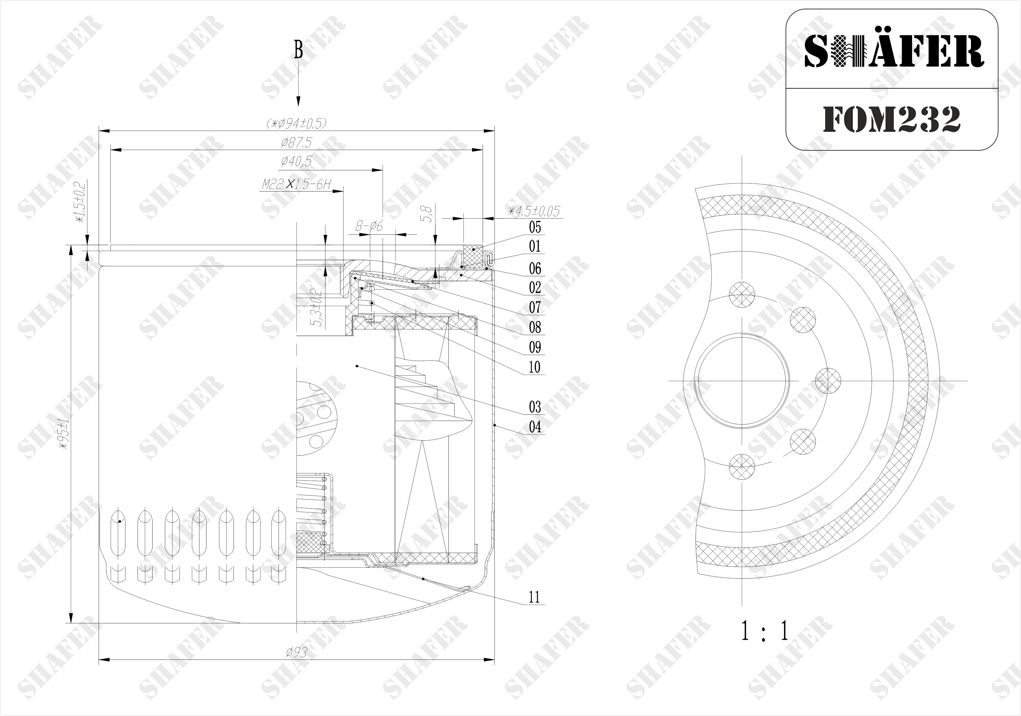 Фільтр масляний Ford 84-00, D = 93mm, H = 95mm, M22x1.5