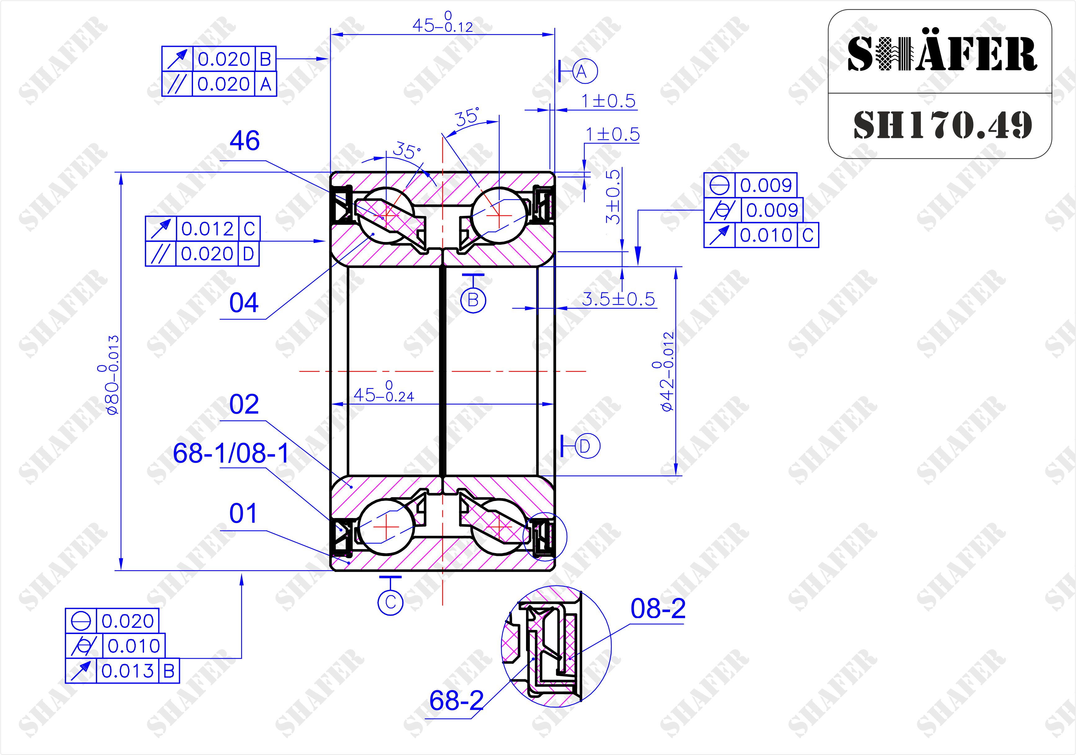 Підшипник передній Mazda 3, 5, 6, 03-10, (42x45x80), ABS+